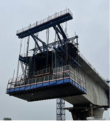 3、移动模架抗倾覆稳定系数不满足要求,拼装完毕后未进行验收。