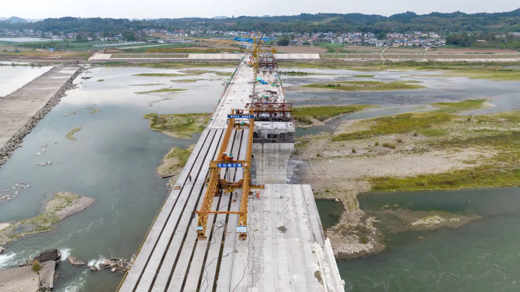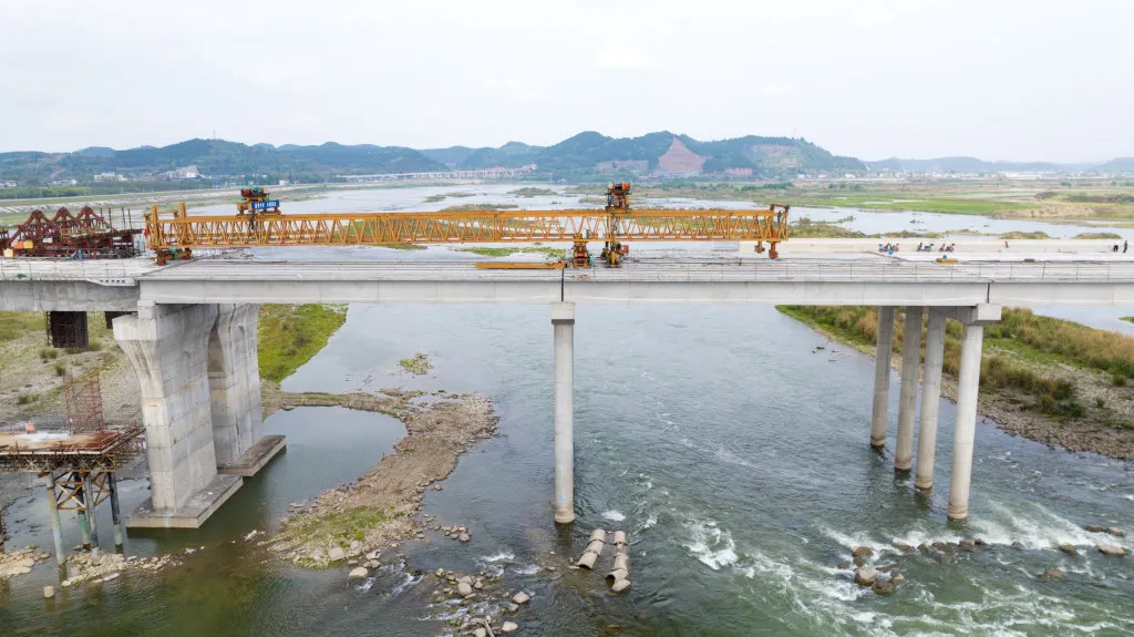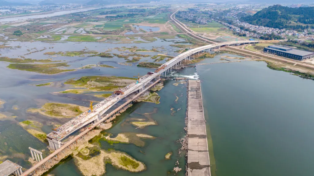 4月1日,记者在遂宁市黄连沱渡改桥项目工地上看到,工人正在加快推进主桥建设。目前,主桥右半幅已合龙,左半幅将于4月底前合龙,7月完成主线贯通,计划8月底通车。 据了解,黄连沱渡改桥项目全长2.764km,采用双向四车道一级公路技术标准建设,设计速度60km/h。项目建成后,从船山区唐家乡到遂宁经开区,开车只需3分钟,大桥通车后将改变两岸居民依靠渡船的出行方式,促进地方社会经济快速发展。来源:全媒体