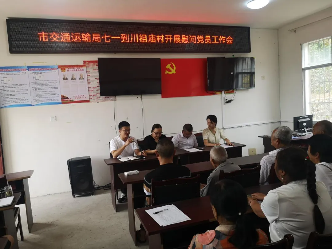 交运快讯 6月26日,射洪市交通运输局深入定点帮扶村——金家镇川祖庙村开展“七一”走访慰问活动。 座谈会上,驻村第一书记陈钰佳首先汇报了驻村以来工作开展情况和下一步工作计划。市交通运输局党组成员、副局长金琳详细询问驻村干部工作和生活情况,对驻村工作队驻村以来开展的各项工作和辛勤付出给予了充分肯定,并表示将充分发挥单位作用,尽最大能力加强对派驻工作队的支持和帮助,不断推进乡村振兴。 座谈会后,慰问组对川祖庙村老党员、帮扶对象等进行了慰问,详细询问了解他们的家庭收入、身体状况、生活保障等情况,送上慰问品,鼓励他们树立乐观心态,积极面对生活,并叮嘱驻村工作队要持续关心关注他们的生活,用心用情做好各项工作,切实帮助解决他们在生活中的实际困难和问题,让他们充分感受到党和政府的关怀。