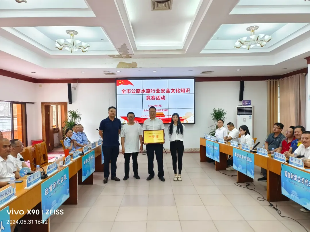 交运快讯 为深入贯彻落实习近平总书记关于安全生产的重要指示精神,进一步推进安全文化生产知识学习,增强行业管理人员和从业人员安全防范意识,凝聚弘扬安全发展理念,夯实安全文化基础,形成人人讲安全、学安全、懂安全良好氛围。5月31日,射洪市交通运输局组织开展全市公路水路行业安全文化知识竞赛活动,竞赛题目重点突出习近平总书记关于安全生产重要论述、安全生产法律法规、安全应急常识以及消防安全知识等内容。通过前期动员部署、周密筹备和层层选拔,共有8支代表队参加竞赛。 活动设置个人必答题、小组必答题和抢答题三个环节,现场气氛热烈,各个代表队队员沉着冷静,配合默契,凭借丰富的知识储备和过硬的能力素质,上演了一场精彩纷呈的安全生产知识大比拼,充分展现出了交通人昂扬向上、奋勇争先、团结协作的精神面貌。 经过激烈角逐,最终市地方海事处代表队最终荣获一等奖,富临射洪公司代表队、市公交公司代表队获得二等奖,执法大队代表队、运管所代表队、市交投公司代表队获得三等奖。