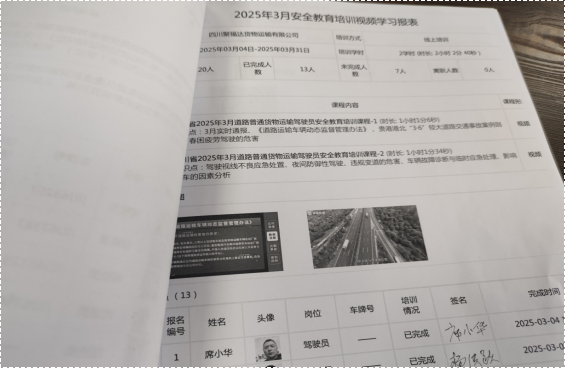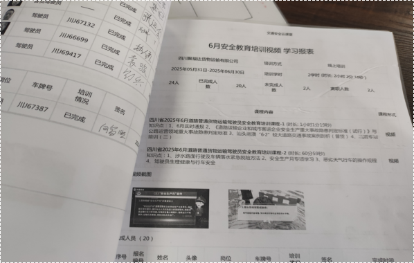 查见企业3月份的培训记录有7人未完成培训;6月份的培训记录中有2人未完成。