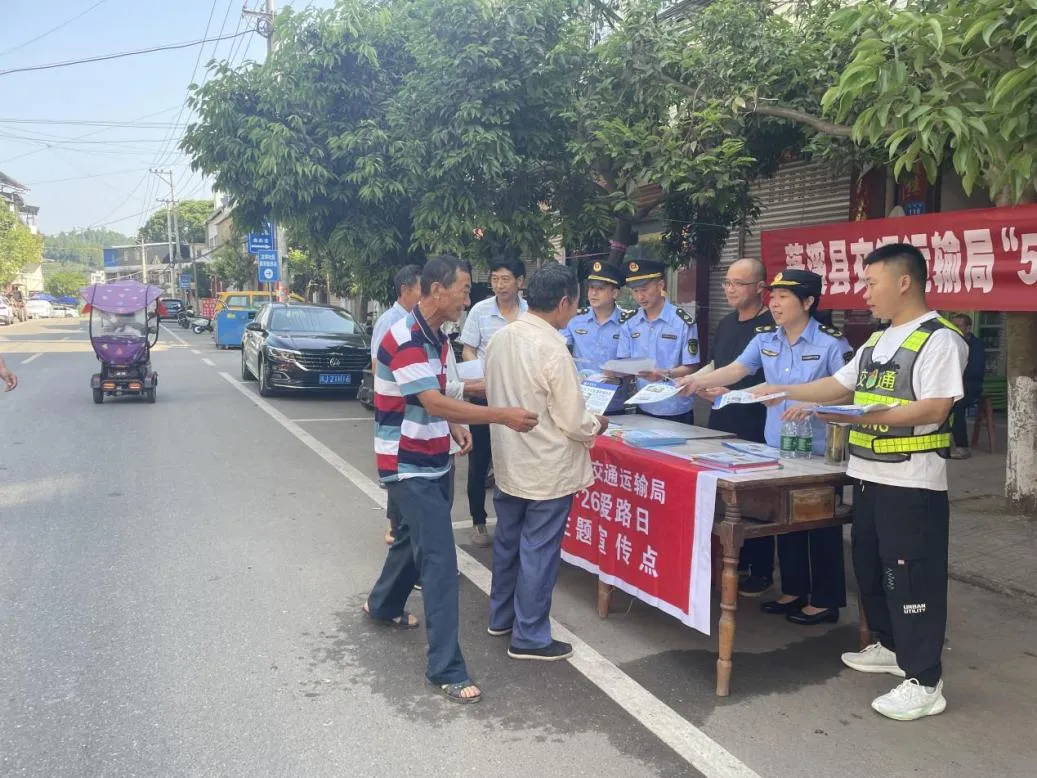 活动以巩固“四好农村路”创建成果,聚焦农村公路管理养护高质量发展为主题,通过在公路沿线、重要点位悬挂宣传标语,在公交车、出租车LED显示屏循环播放电子标语,在县客运站、渡口码头、超限站及乡镇集市等地方设立宣传点向过往行人、司乘人员发放《爱路护路倡议书》和《中华人民共和国公路法》《公路安全保护条例》等宣传资料。