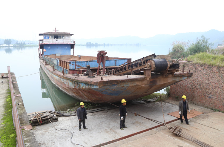 11月23日,在遂宁市船山区老池镇遂宁市吉庆船舶制造有限公司内,随着川遂宁货2137自卸砂船的“上岸”,该船舶正式进入拆解程序,这也是今年大规模设备更新以来全省第一艘正式报废的老旧营运船舶。