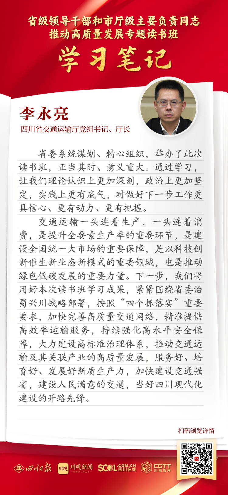 四川省交通运输厅党组书记、厅长李永亮:培育发展新质生产力 推动交通运输高质量发展