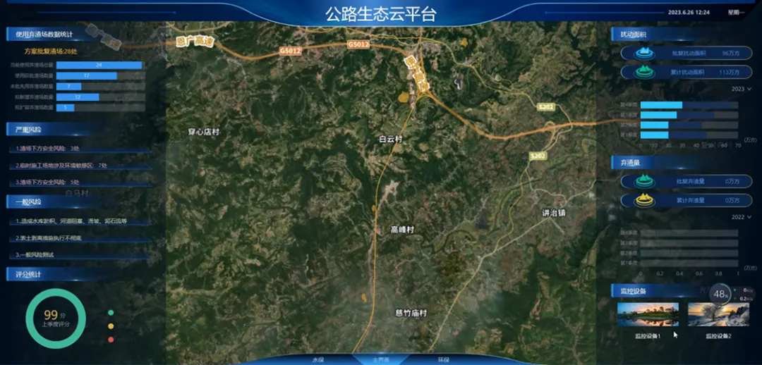 基于天空地一体化技术手段,建立了涵盖公路建设全过程、全对象以及空间、时间、属性三维要素融合的多源异构数据库。数字化赋能公路选址选线、环水保管家服务、环水保现场管理,并可实现一张图指导公路生态环境重大风险管控,推动公路生态环境保护的信息化、智慧化和产业化发展。