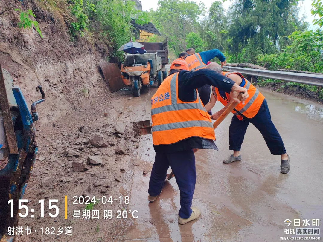 受本轮降雨影响,射洪部分县乡公路出现不同程度的垮方及树木倒塌等水毁灾害。射洪市交通运输局立即组织公路养护段强化管养道路巡查,并及时清理水毁灾害,确保群众安全出行。