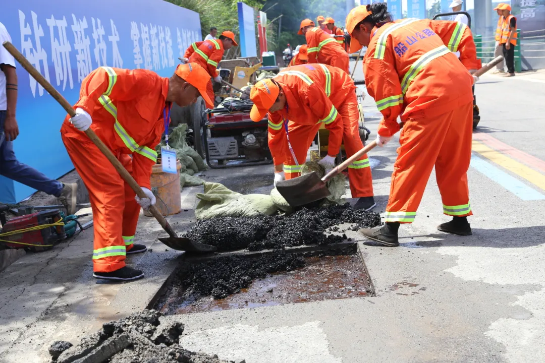 据了解,当天的比赛科目为沥青路面坑槽修补。该考核项目由3名人员合作完成,2人作为参赛者,1人为协助人员,总时间为45分钟。