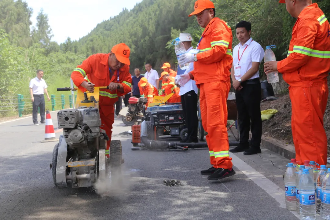 当天上午,全市交通运输行业养路技能比赛同步进行。在规定的区域内,来自5个县(市、区)的养护队伍同台竞技,比拼公路养护绝活。