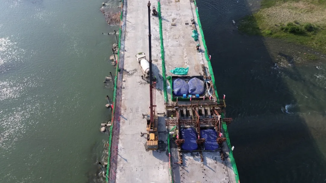4月28日,记者在黄连沱渡改桥项目建设现场看到,历经连续4个小时的混凝土浇筑后,该项目主桥顺利实现合龙。