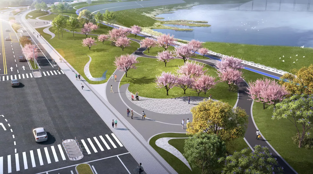 在推进道路建设的同时,景观带的绿化工作也同步展开。为了丰富市民的户外生活,提升城市生态环境,景观带沿线规划设计了休闲广场、休憩廊架、滨江绿道、骑游道等多元化景观设施。目前,施工人员正加班加点进行绿化种植,力争早日让这条全新的生态景观带成为市民休闲娱乐的好去处。