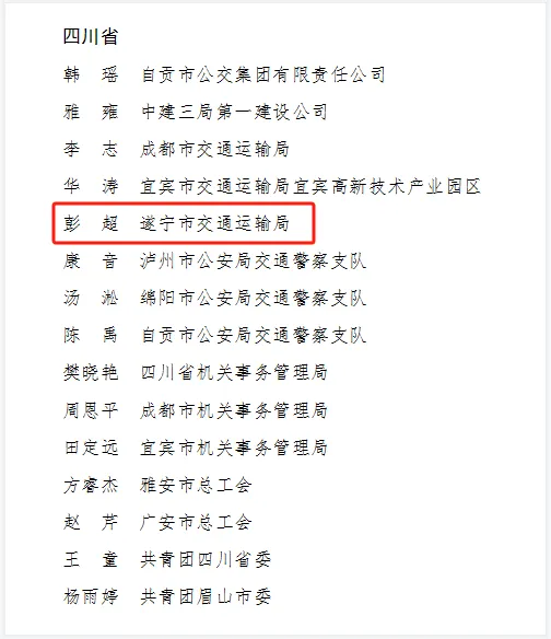 彭 超 遂宁市交通运输局