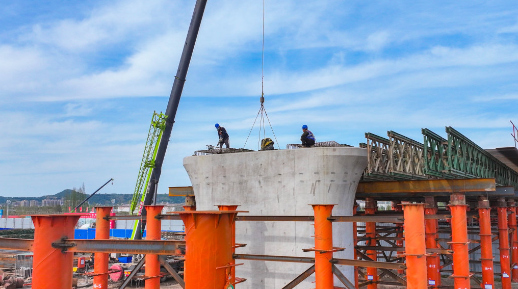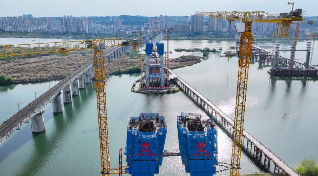 全力拼经济 合力搞建设︱成达万高铁遂宁涪江特大桥主塔加快施工建设