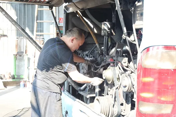 “检修人员早上8点上班,晚上9点半下班。维修车间需保证通风和安全,无法安装空调,车辆在检修期间需要熄火,他们的作业环境又闷又热。”遂宁发展公共交通有限公司修理厂厂长许胜中告诉记者,为保障员工身体健康,修理厂在现场配备了风扇,不仅能给发动机降温,也给修理工在维修时散热。同时,修理厂还配备了防暑降温药品。