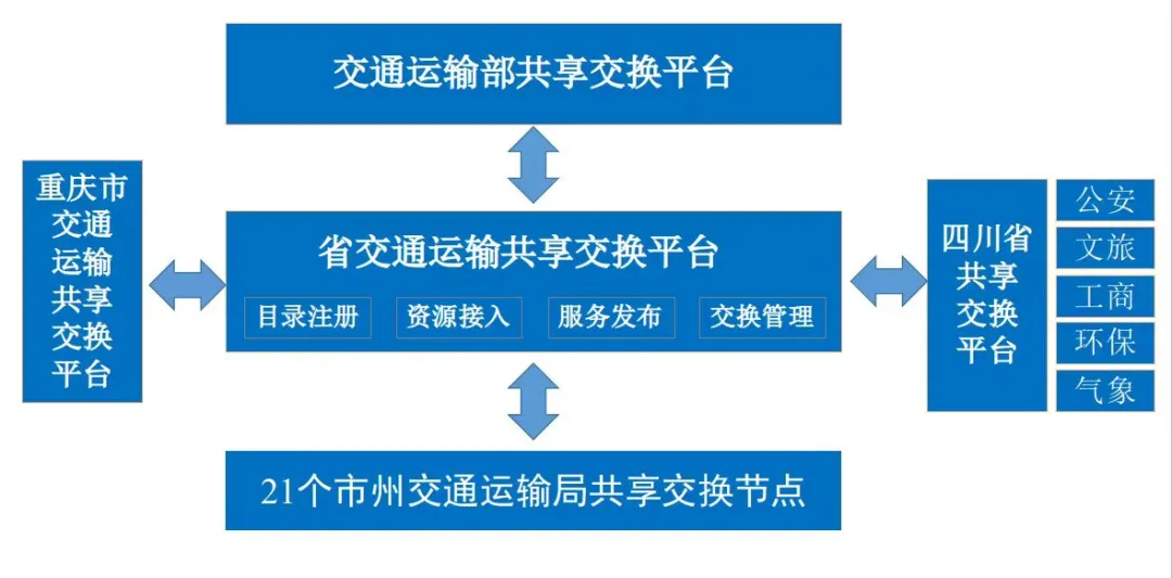 依托我厅交通运输数据共享交换平台,实现纵向与交通运输部、省政府和市(州)交通运输局,横向与公安、文旅等省直单位之间的数据共享交换。同时,与重庆市签订《成渝地区双城经济圈交通运输信息资源共享应用合作协议》,建立两地资源互联、互通、互换的长效机制,推动成渝两地交通运输数据资源共享从夯基垒台、重点突破迈向全面起势。目前,平台已发布数据157项,其中向交通运输部共享数据81项,向省大数据中心共享数据161项,共享数据量位居省直部门第一。并完成向全省21个市(州)交通运输管理部门平均回流属地数据120余项。数据要素在流动中实现了增“值”、提“质”,为行业应用提供有力支撑。