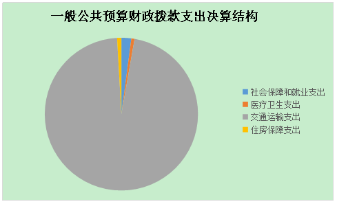 2017年一般公共预算财政拨款支出28646.12万元,主要用于以下方面:社会保障和就业支出594.73万元,占2.08%;医疗卫生支出196.03万元,占0.68%;交通运输支出27598.72万元,占96.34%;住房保障支出256.65万元,占0.90%。