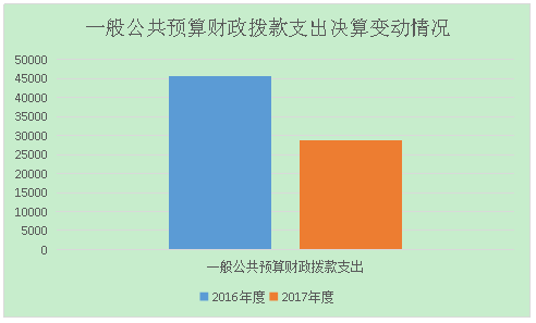 2017年度一般公共预算财政拨款支出28646.12万元,占本年支出合计的74.61%。与2016年相比,一般公共预算财政拨款减少17051.68万元,下降38.19%。