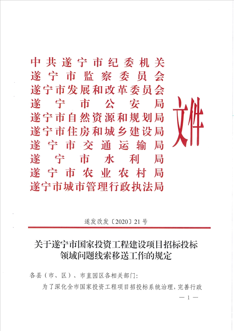 关于遂宁市国家投资工程建设项目招投标领域问题线索移动工作的规定(遂发改发〔2020〕21号)