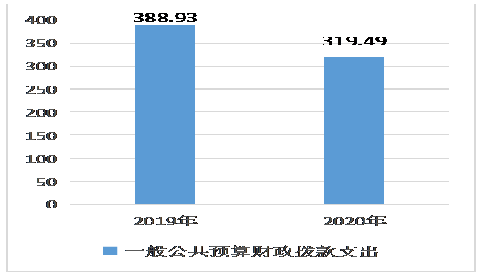 2020年一般公共预算财政拨款支出319.49万元,占本年支出合计的100.00%。与2019年相比,一般公共预算财政拨款减少69.44万元,下降17.85%。主要变动原因是2020年较2019年人员减少9人,支出减少。