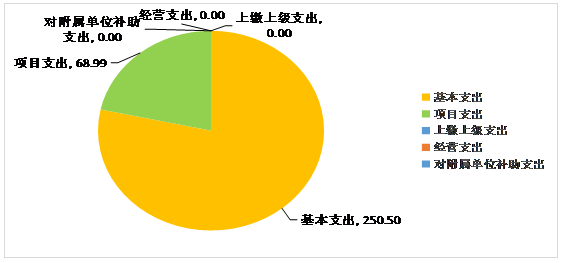 2020年本年支出合计319.49万元,其中:基本支出250.50万元,占78.41%;项目支出68.99万元,占21.59%;上缴上级支出0.00万元,占0.00%;经营支出0.00万元,占0.00%;对附属单位补助支出0.00万元,占0.00%。