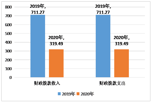 2020年度收、支总计319.49万元。与2019年相比,收、支总计各减少391.78万元,下降55.08%。主要变动原因是2020年较2019年人员减少9人,支出减少;2020年底,财政收回结转资金。单位:万元
