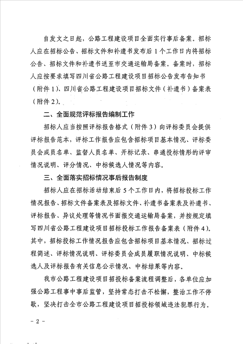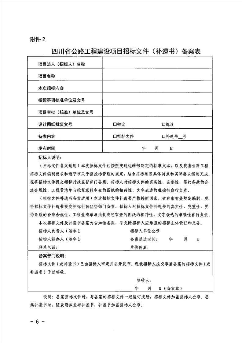 遂宁市交通运输局关于调整公路建设项目招投标备案流程的通知