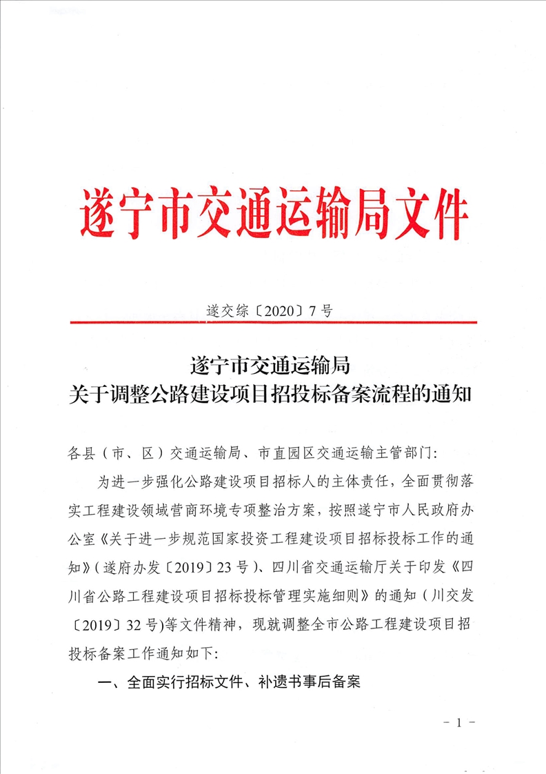 (遂交综〔2020〕7号)遂宁市交通运输局关于调整公路建设项目招投标备案流程的通知.pdf