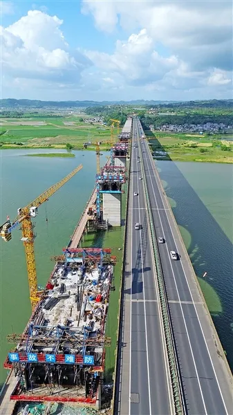 近日,记者在成南高速扩容工程路基6标段二分部涪江特大桥建设现场看到,作业人员正在熟练仔细地进行焊接作业、钢筋绑扎、拼装挂篮、调整模板、固定螺栓,抓紧时间进行水上桥梁段挂篮施工。 “火源严管,预防为主”“绳子断在细处,火灾出在疏忽”……现场,一条条消防宣传标语抬头即见且琅琅上口,时刻警醒施工人员绷紧消防“安全弦”。 “天气逐渐炎热,挂篮施工阶段涉及动火的地方较多,存在很大的消防安全隐患,大家一定要严格按消防安全标准施工。”中建股份成南高速公路扩容工程路基6标项目涪江特大桥工区安全员赵越说,“针对施工环节重难点问题,我们多次组织施工人员进行技术交底培训,让他们将消防安全及钢筋绑扎、预应力管道布设、模板安装、混凝土浇筑等环节的技术规程及操作细节熟记于心。” 据了解,涪江特大桥是成南高速扩容工程重要的控制性节点工程之一,全长1264.92米,桥宽20.5米,设置主墩4个,有95根桩基,施工难度大。自开工建设以来,施工方积极投入物力、人力,科学组织施工,各项建设工作高效实施,工程进度已取得阶段性成效。 目前,成南高速扩容工程遂宁段涪江特大桥、郪江特大桥、伍家坡隧道、陈家湾隧道及各类新建、改建互通立交等控制性工点正按计划稳步推进。 记者从市交通运输局获悉,成南高速扩容工程遂宁段自开工以来已完成路基工程95%、桥梁工程74%、隧道工程99%;今年一季度已完成产值4.98亿元,年度计划完成产值22亿元,项目力争今年底基本建成。 ![]()