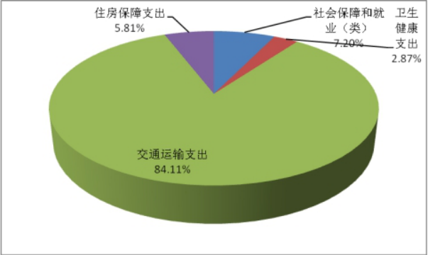 2020年一般公共预算财政拨款支出397.12万元,主要用于以下方面:社会保障和就业(类)支出28.61万元,占7.2%;卫生健康支出11.40万元,占2.87%;交通运输支出334.02万元,占84.11%;住房保障支出23.09万元,占5.82%。