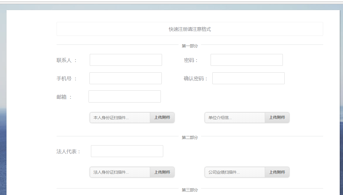 注册账号:在招标公告中点击‘报名'按钮,上图已标红,填写注册信息,附件可以是图片(png,jpg)格式,如果是多张图片可以上传PDF格式文件。注册完成后续通知甲方审核,审核通过后在页面中点击登录,用户名是注册时填的公司名称,密码是注册时填写的密码。